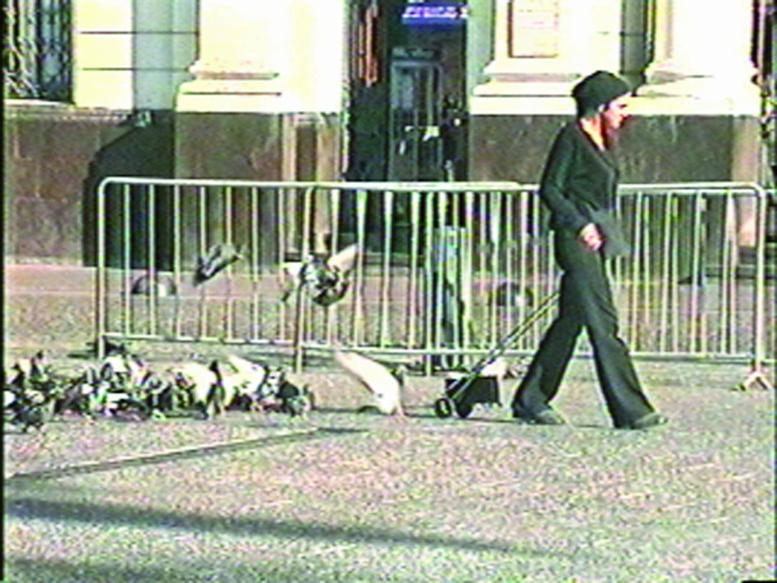 In seconda istanzia la performance si svolge in Piazza San Marco a settembre 2006 alle 9:30 am, nel cuore simbolico e fragile di Venezia. Per trenta minuti l’artista avanza nella piazza accompagnato da uno sciame di piccioni, che nutre con la mano destra mentre, con la sinistra, solleva un ombrello come segnale di guida. L’ombrello richiama quelli utilizzati dalle guide turistiche per condurre i gruppi attraverso la città: un gesto di orientamento, ma anche di potere simbolico, che qui viene ironicamente traslato su un “gruppo” di piccioni.