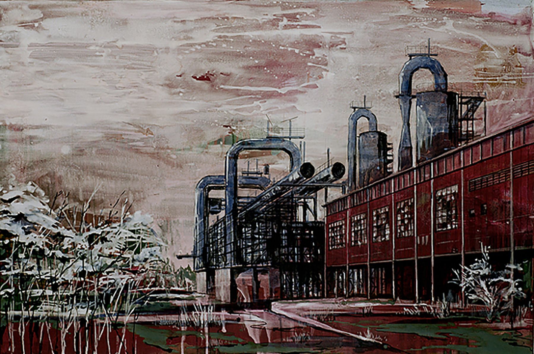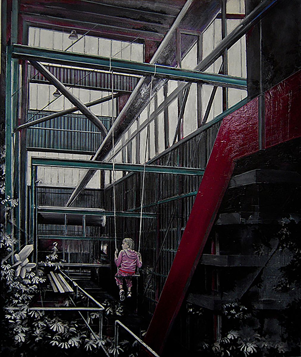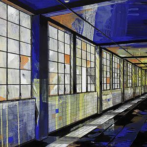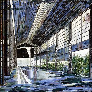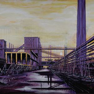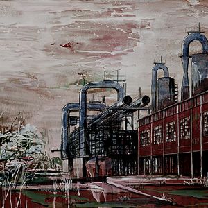Nei dipinti troviamo un topos permanentemente architettonico, sia industriale che organico. Se osserviamo bene non c’è molta differenza tra un paesaggio industriale e la rete del paesaggio organico: entrambi possono “contenere” oppure “essere abitati”...