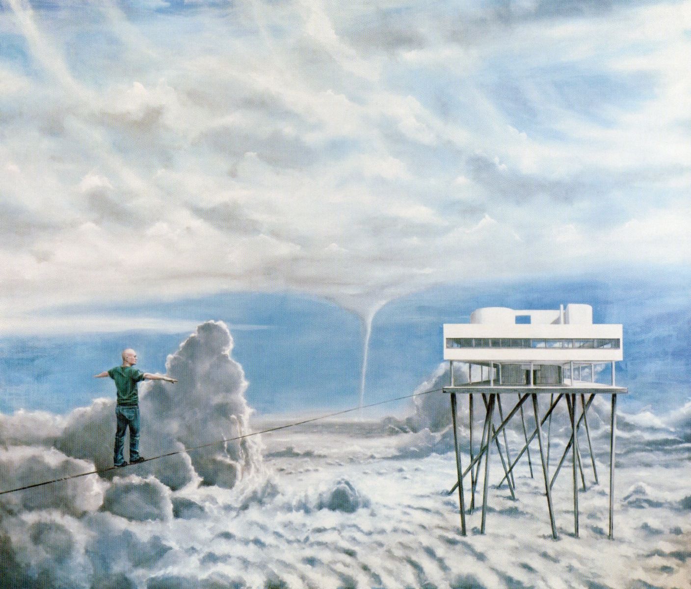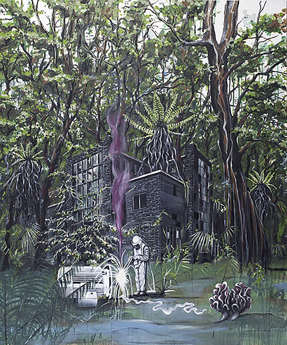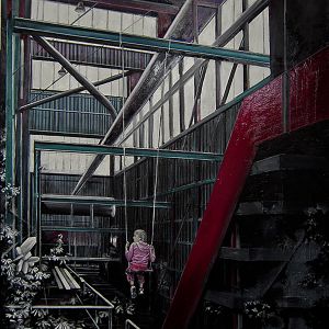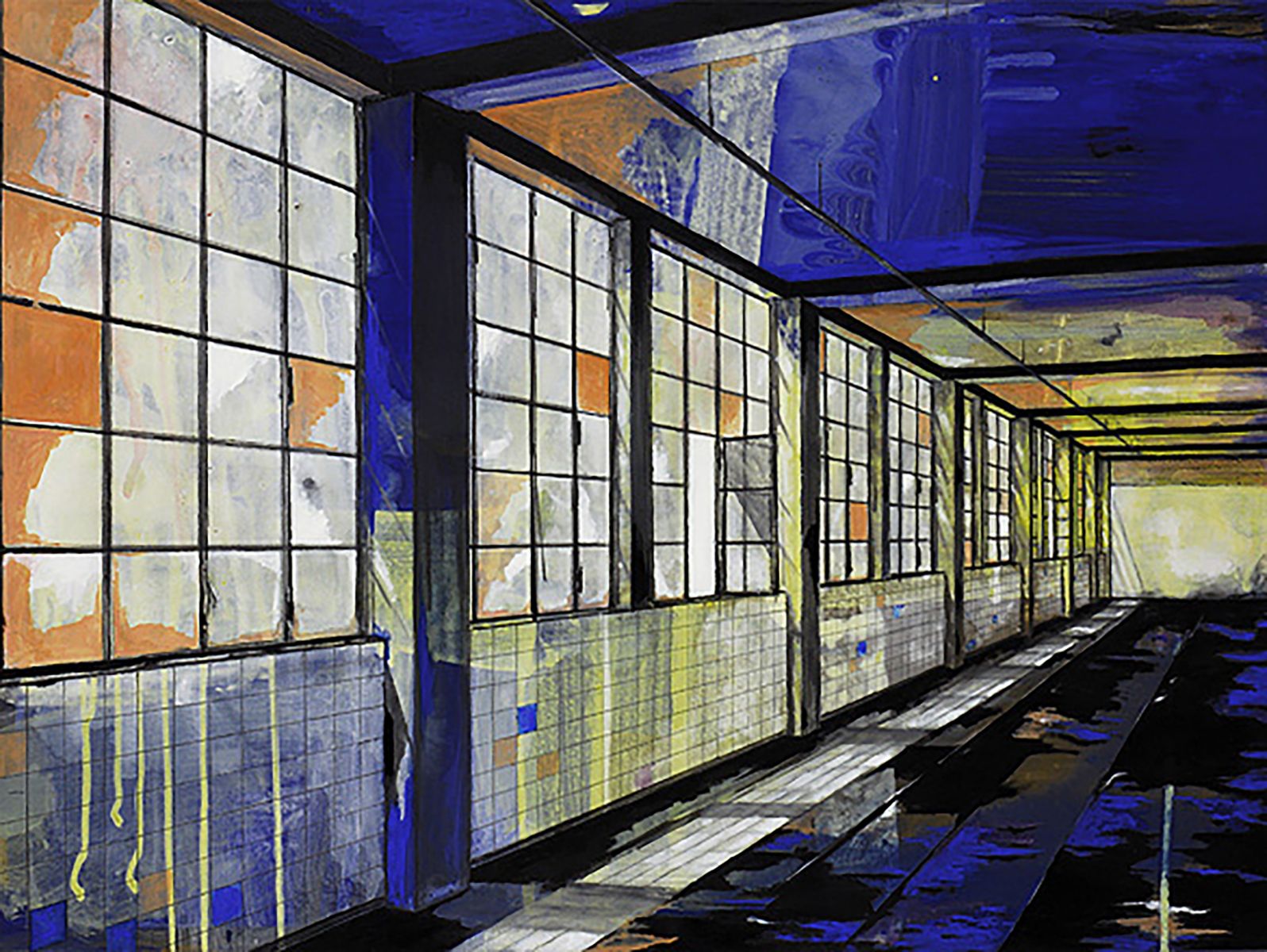 Nei dipinti troviamo un topos permanentemente architettonico, sia industriale che organico. Se osserviamo bene non c’è molta differenza tra un paesaggio industriale e la rete del paesaggio organico: entrambi possono “contenere” oppure “essere abitati”...