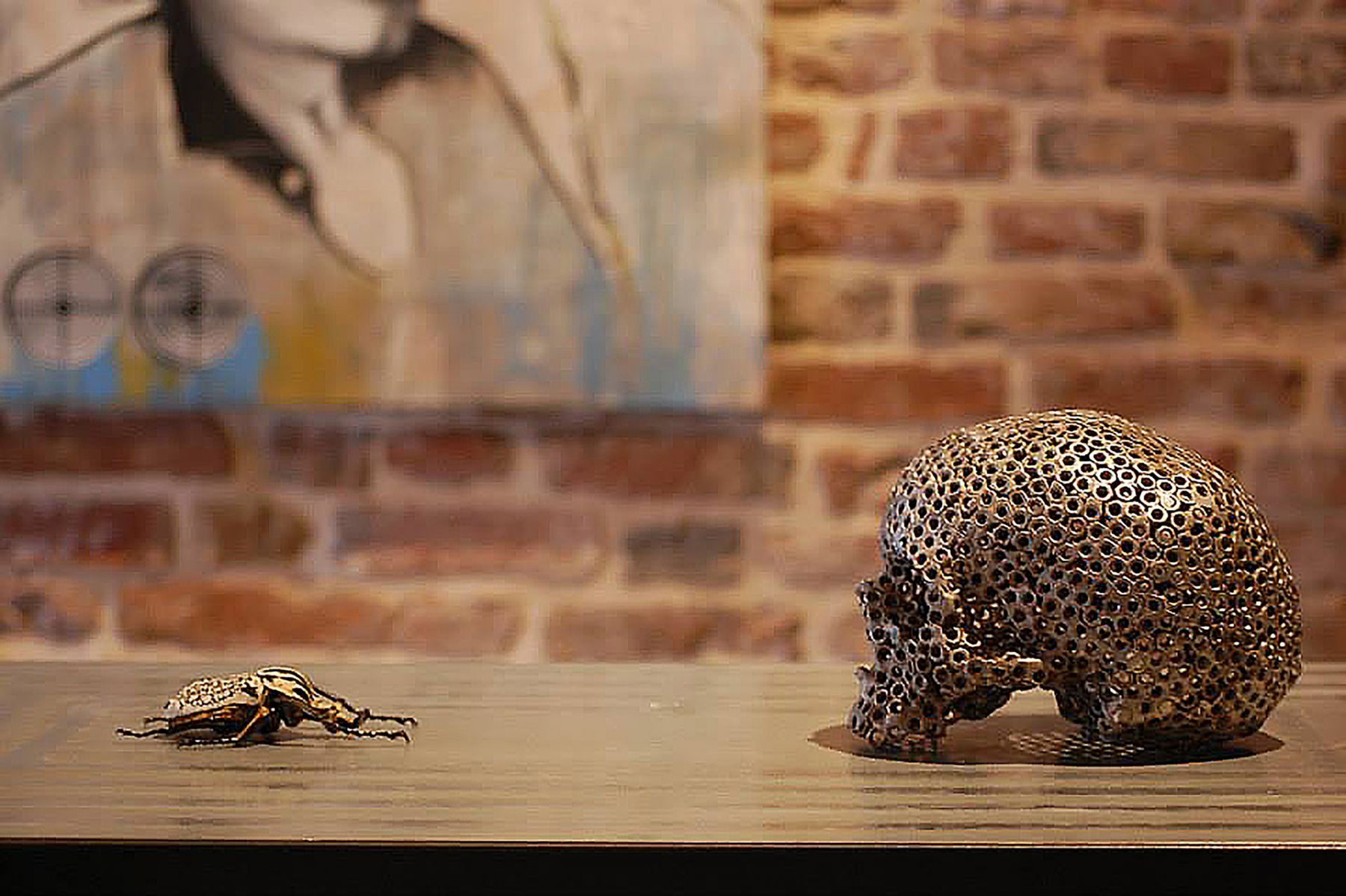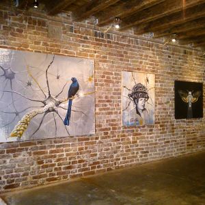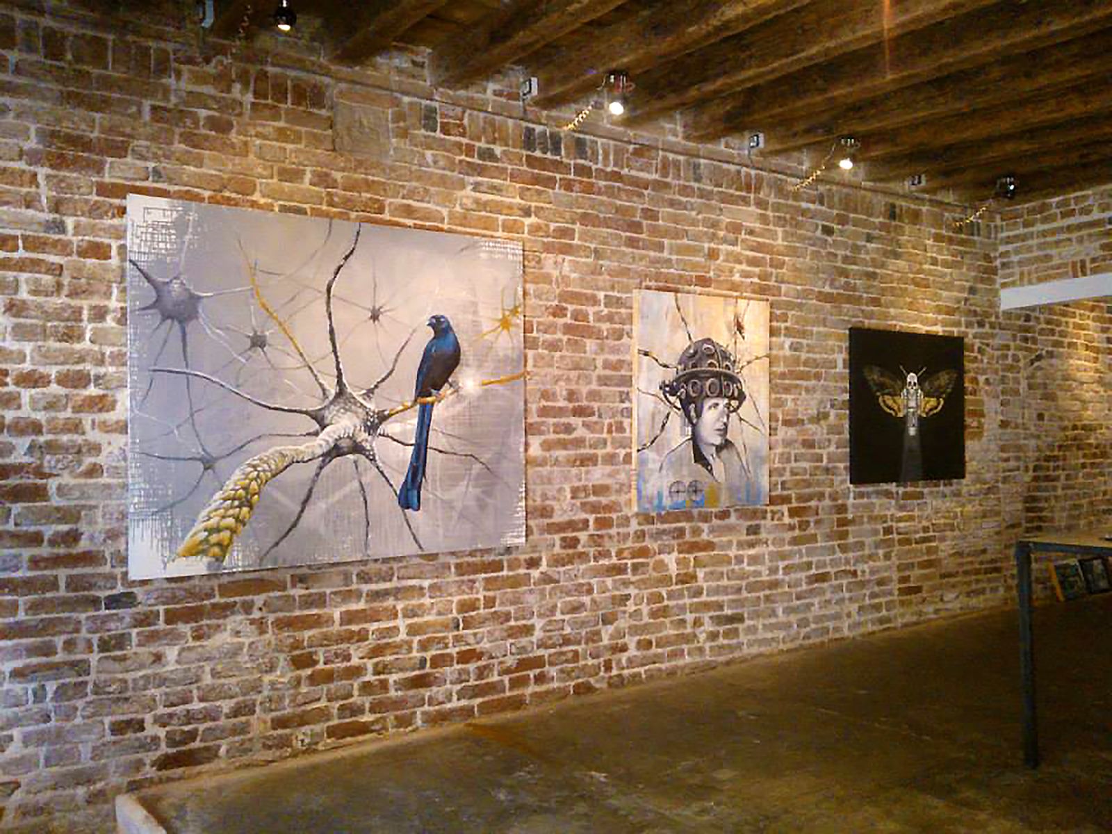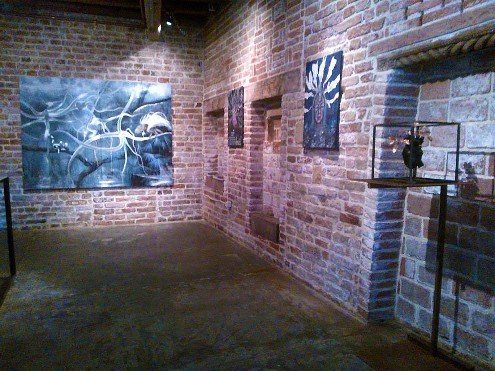 La scelta dello spazio è indispensabile per provocare un dialogo... i muri grezzi, le fughe, le travi di Caos Gallery creano una atmosfera underground, ideale per l’universo di Gunter, che in apparenza solitario e grottesco, si arricchisce di elementi rigeneranti e di buon augurio. Qui le opere sono accolte e si fondono con lo spazio (elemento importantissimo nell’immaginario dell’artista). La pittura, la scultura e il video ci permettono d’inoltrare la soglia delle percezioni per codificare, nelle opere, la nostra personale realtà e quella del mondo che ci circonda.