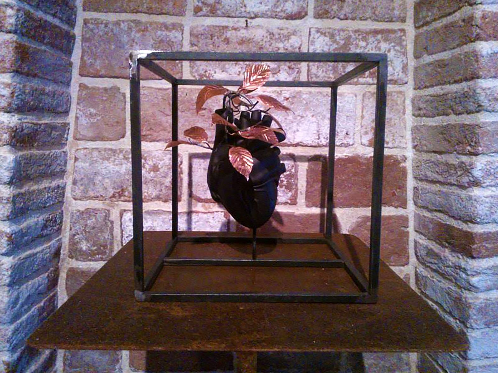 Lo stesso succede con il cuore, nuovo elemento, che nella creatività dell’artista assume una sublime rilevanza. Il cuore è il motore primordiale dell’essere umano. Quando il motore funziona la linfa vitale fluisce nell’intero organismo, sviluppando la possibilità di creare nuovi elementi... nuove combinazioni.